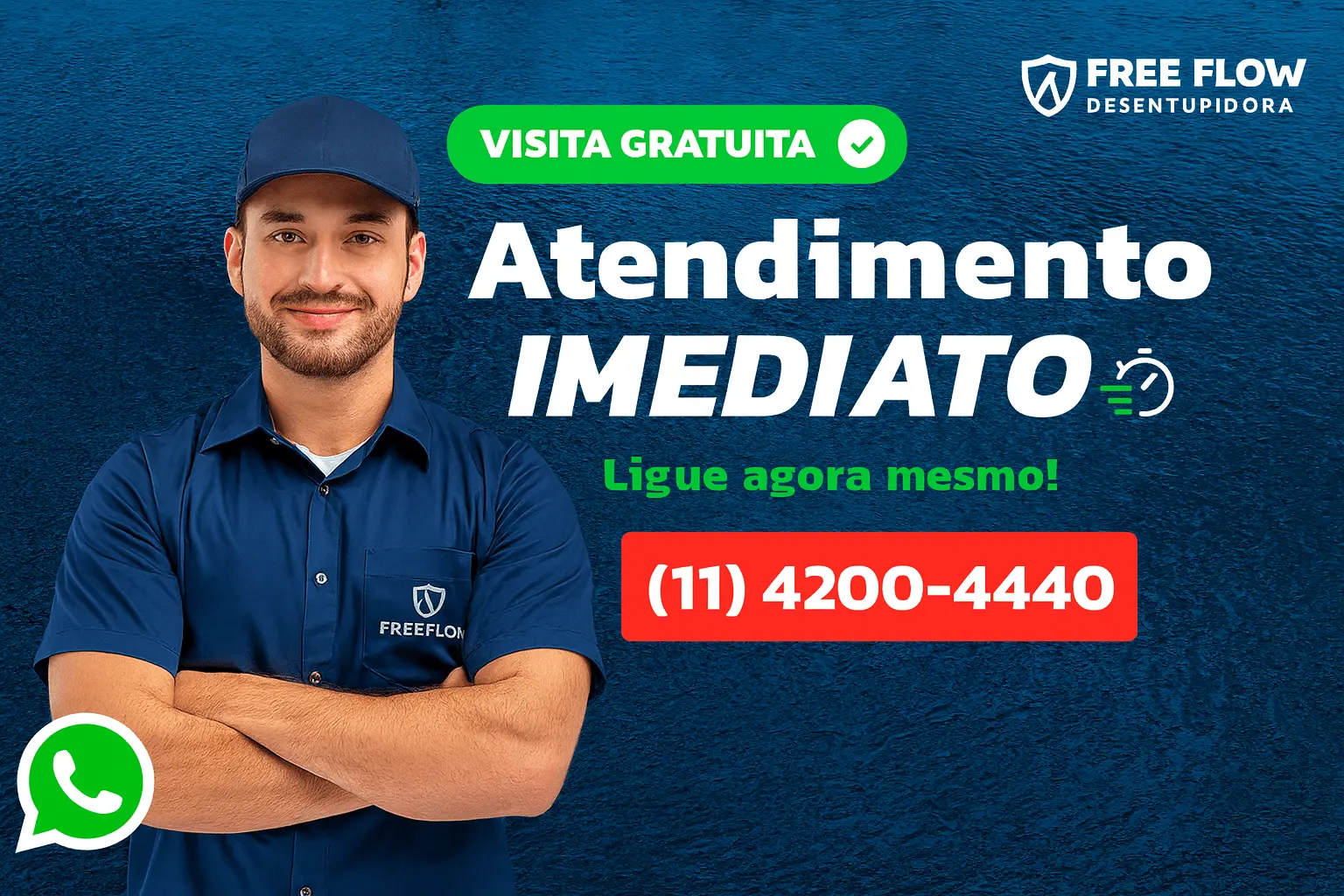 Na Free Flow, sabemos que problemas com entupimentos não podem esperar. Por isso, oferecemos atendimento emergencial com chegada em até 30 minutos, sem taxa de visita. Seja pia, vaso, esgoto ou caixa de gordura — nossa equipe especializada está pronta para resolver com rapidez, eficiência e o melhor custo-benefício. Atendimento 24h, pagamento facilitado e suporte direto pelo WhatsApp.